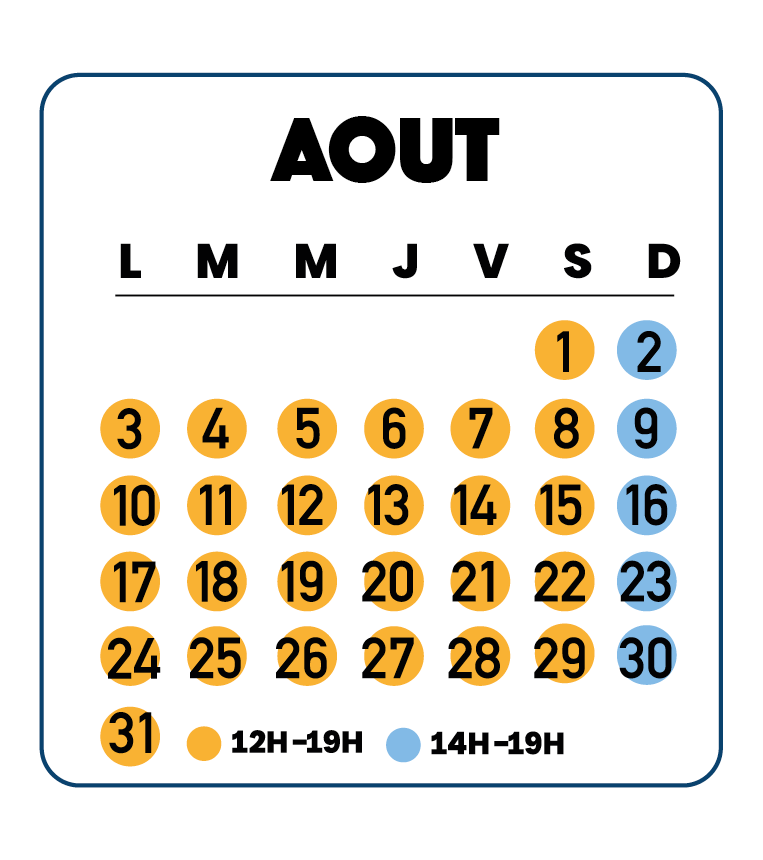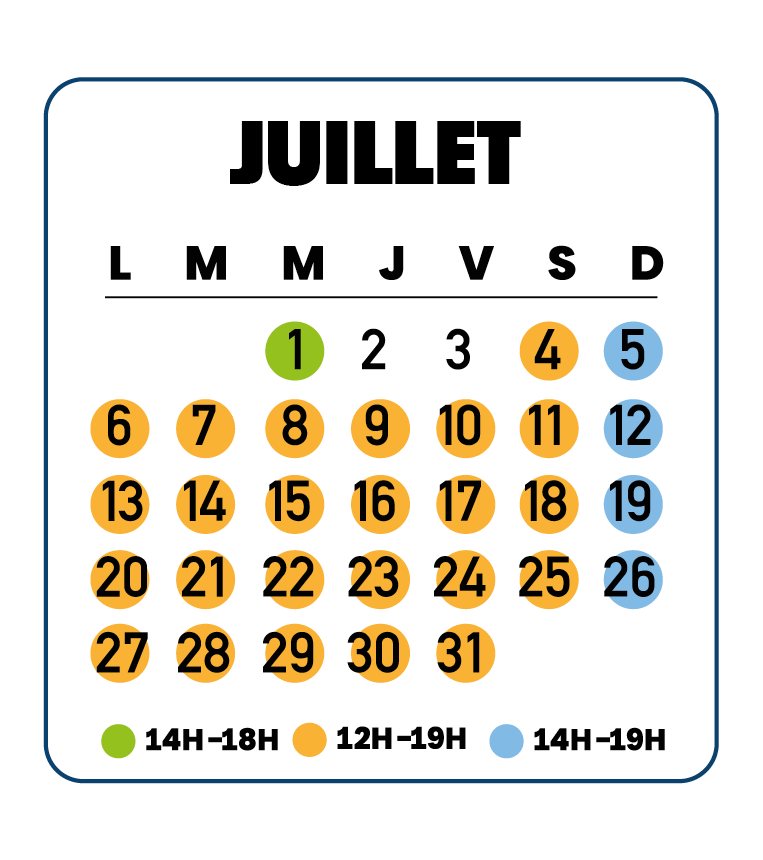 Les horaires et dates d'ouverture sont susceptibles d'être modifiés selon l'évolution du calendrier scolaire et des conditions météorologiques.